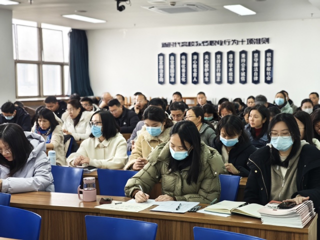 会议最后,周书记对全体教职工进行了师德师风专题教育。他强调,师德师风是教师队伍建设的灵魂,全体教职工要坚守教育初心,牢记育人使命,严格遵守职业道德规范,做到以德立身、以德立学、以德施教。他要求全体教师在日常教育教学中注重言传身教,关心学生成长,树立良好的师德形象,以更高标准、更严要求、更实举措,持续改进作风,守好工作底线,为培养担当民族复兴大任的时代新人贡献力量,共同书写学院教育事业的新篇章。