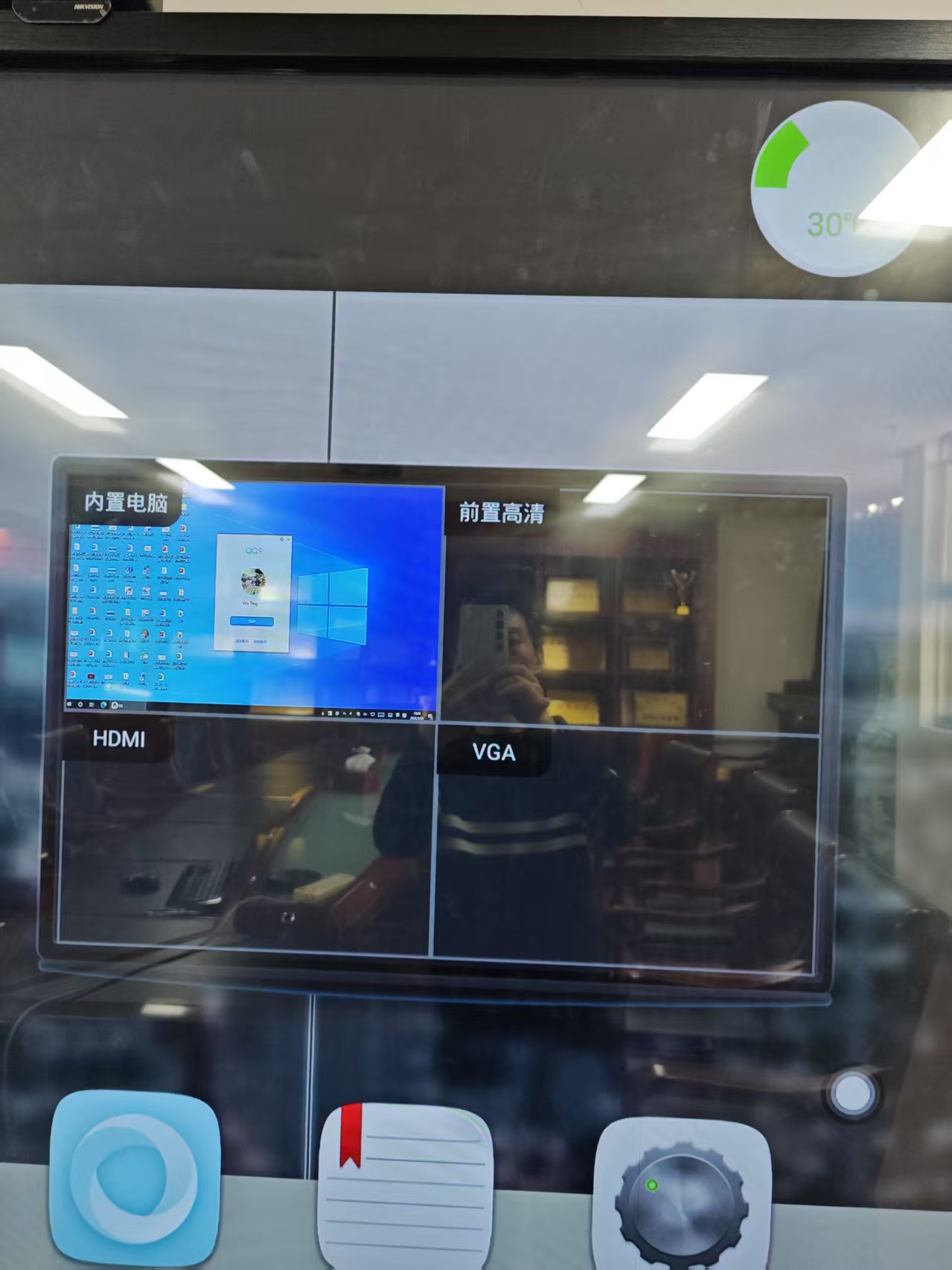 1)大屏开机后用手从大屏最下方向上滑,913的大屏出现图1菜单上选择“信号源”;906的大屏会出现图3切换通道菜单,选择“HDMI2”;