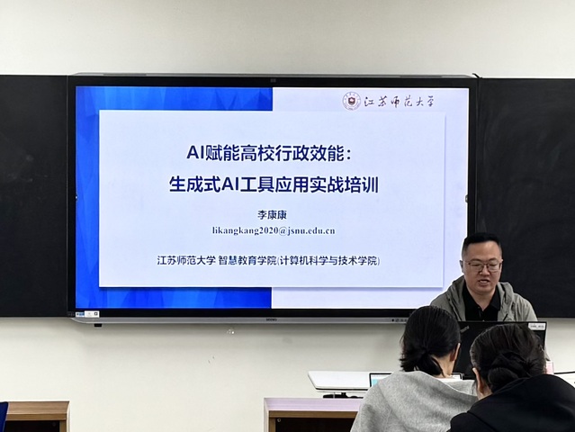 在AI赋能实战培训环节,李康康开展“AI赋能高校行政效能:生成式AI工具应用实战培训”讲座,演示生成式AI在公文写作、会议纪要处理、宣传材料优化、数据统计及智能问答等场景的应用技巧,并强调要规范使用AI工具,注重数据隐私保护,在提升效率的同时强化工作思维与能力培养。