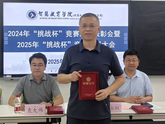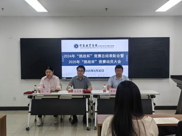 2025年5月30日下午,智慧教育学院于静远楼906会议室召开2024年“挑战杯”竞赛总结表彰会暨2025年竞赛动员大会。校团委书记袁大伟、院长董永权、院党委副书记武悦、学院师生代表参会,会议由武悦主持。