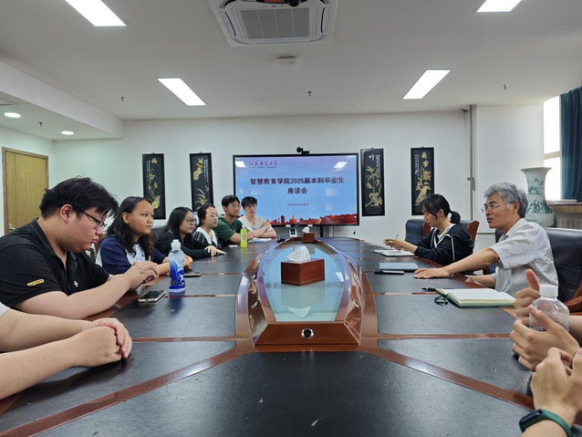 为深入了解毕业生成长需求,进一步提升教育教学质量,2025年6月4日下午,智慧教育学院在静远楼908会议室召开2025届毕业生座谈会。学院教学副院长李子运、教务秘书胡宇晨、辅导员张家辉以及12名毕业班学生代表参加了会议,会议由李子运主持。