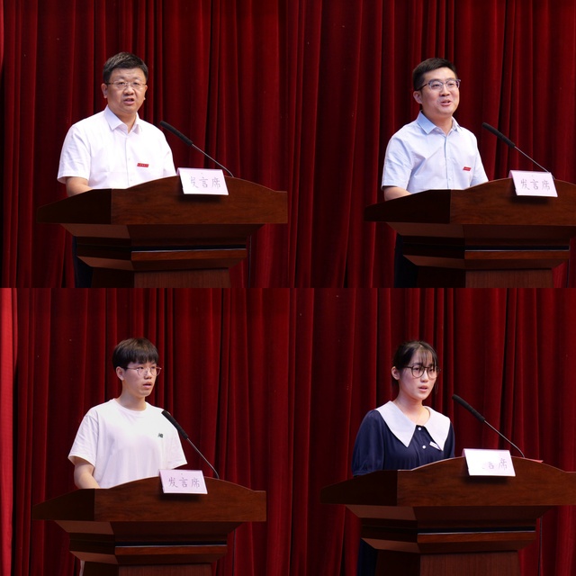 老生代表徐智超分享了在校学习与生活经验,介绍了学院各类服务平台,鼓励新生勇于突破舒适圈,实现自我蜕变。新生代表高雅抒发了自己进入大学的感悟,展望未来大学生活,呼吁同学们共同进步、互相勉励。