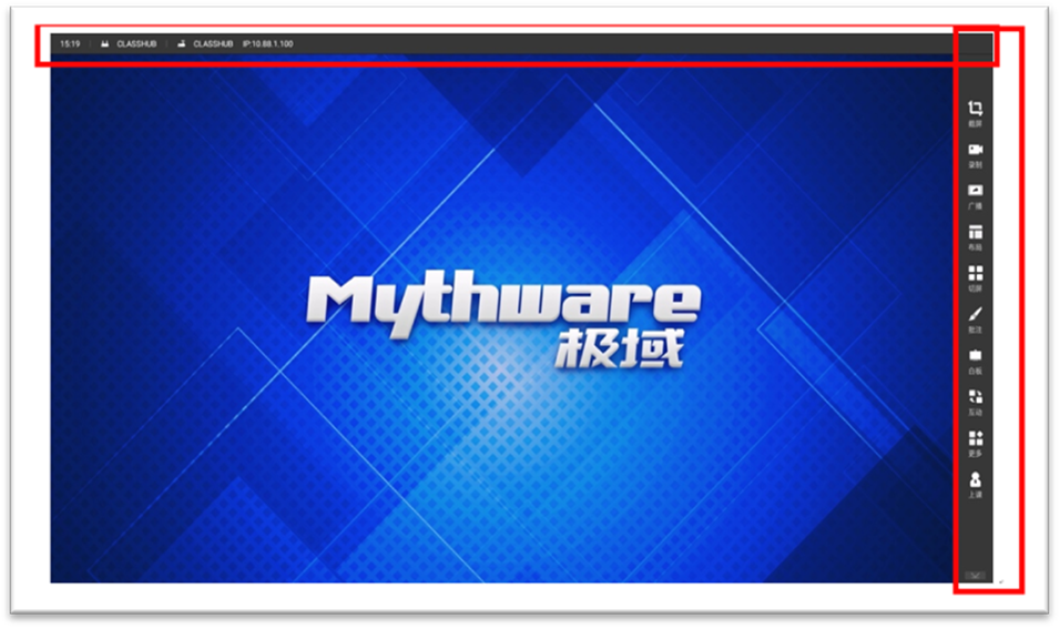 工具栏(红色方块区域),其它区域默认显示的是大屏内置电脑的Windows界面: