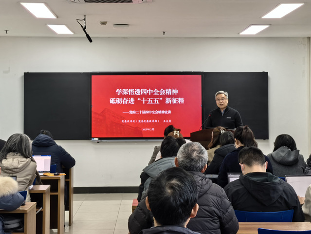 宣讲会上,王夫寿对党的二十届四中全会精神进行了全面系统的深入解读。他紧扣全会核心要义,重点阐释了“十五五”时期经济社会发展的指导思想、主要目标和重点任务,对《中共中央关于制定国民经济和社会发展第十五个五年规划的建议》进行了剖析,并结合学校发展实际,分析了学校面临的新机遇与新挑战。王夫寿勉励学院全体教职工要切实把思想和行动统一到党中央决策部署上,立足学院学科专业特色,主动融入国家战略和地方经济社会发展需求,为学校高质量发展贡献力量。