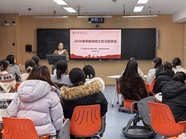 为扎实推进教育硕士实践教学环节,明确实习任务与目标,2026年1月10日下午,人工智能与计算机学院(智慧教育学院)举行2026年教育硕士实习动员会。本次实习将于今年3-7月陆续开展,届时全体2024级现代教育技术和职业技术教育的研究生将分赴各实习学校,在信息技术教学一线开展实践锻炼。会议邀请现代教育技术专业导师组组长王娟教授做主题动员。