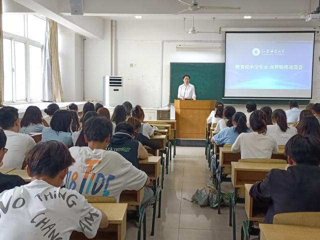 2023年7月1日下午,智慧教育学院教育技术学专业在7号楼226教室召开了业界锻炼动员大会。教学副院长李子运教授、党委副书记武悦、教育技术系主任王娟教授,负责人胡永斌副教授以及21智51、52班全体同学参加了此次大会。会议由系主任王娟教授主持。