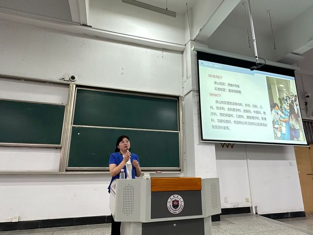 首先,张院长就新生关注的医保问题进行了解读,带领同学们从医保使用、报销政策,医保续期、校内就医转诊等情况进行了详细讲解,并对大学生重大疾病补助政策进行讲解说明,保障同学们的日常就医需求。接着,张院长就校园常见传染病防控知识进行了宣教,通过生动的案例,由浅入深向学生讲述预防传染病的基本知识。最后,张院长强调,没有健康,就没有一切。她鼓励同学们在课余时间,多参加体育锻炼,增强抵抗能力,以强健的体魄迎接学习生活挑战。