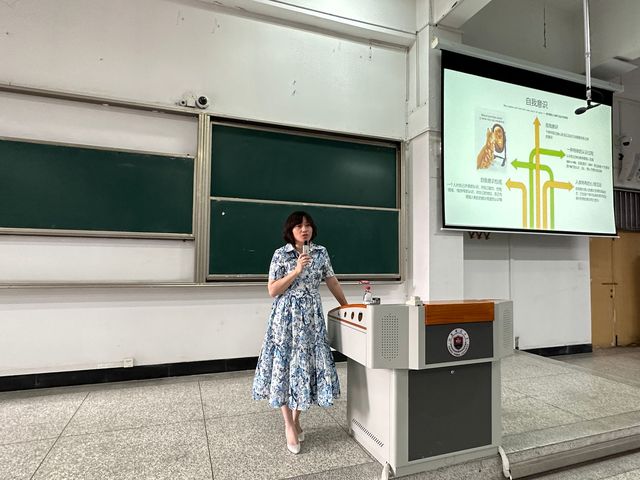 首先,石处长以“初印象”互动游戏作为开场,询问大家“我是谁”,引出每个人都是由姓名和无数特点定义的个体,每个人都是独一无二的存在。之后,石处长通过引导同学们观看“大猩猩自我认知”视频,说明认识自己是一个不断探索的过程。同时,石处长指出:认识自己越深刻,才越有可能做更好的自己。“良好的健康状况,精神饱满和体力充沛——这是朝气勃勃地感知世界、乐观主义精神和随时准备克服困难的思想的最重要条件”最后,石处长希望同学们再今后的大学生活中能够接纳自己的不足,发现他人的闪光点,保持体育锻炼,永远以乐观积极的心态迎接挑战。