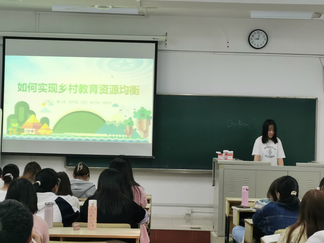本次公开课的教学内容是一次小组汇报课首先赵雪梅老师介绍了本节课的课程安排,以及小组汇报的主题和相应的要求。随后,组织同学们进行小组的汇报,并对不同小组之间开展讨论和互评最后,授课教师进行总结评价。本节课小组汇报的主要内容是《三个课堂助力乡村教育发展》和《如何实现乡村教育资源的均衡发展》两个主题。