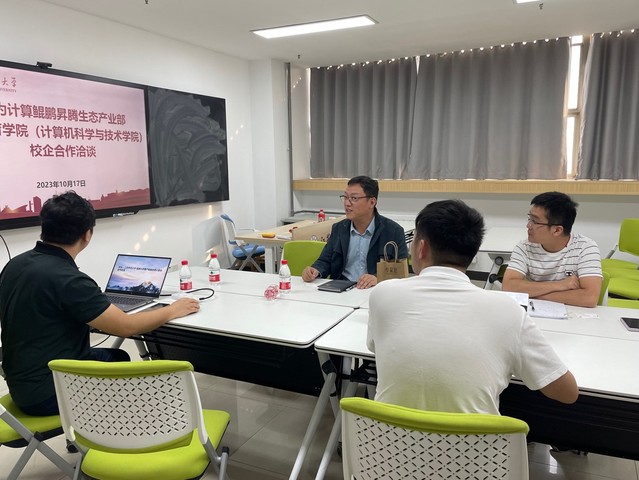首先,华为技术有限公司鲲鹏计算产品线生态发展总监严伟介绍了华为基于鲲鹏与昇腾两大基础芯片族在openEuler、openGauss开源生态创建、智能基座推广以及产教融合方面取得的成绩;而后,祝义副院长介绍了学院的优势学科和一流专业建设情况,尤其是学院在产教融合品牌专业和基地建设历程与取得的成果;最后,双方就鲲鹏·昇腾生态体系创建、特色课程合作建设模式、产教融合育人基地建设等方面展开了深入探讨。
