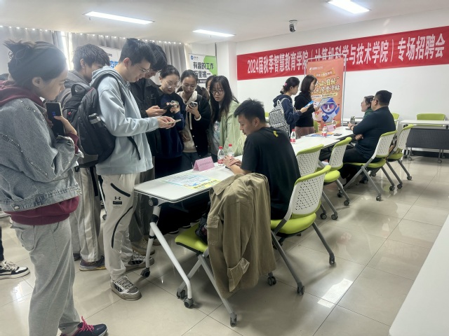 为拓宽毕业生就业渠道,进一步推动毕业生就业进展,10月24日上午,智慧教育学院在静远楼913报告厅举办了专场招聘会。学院提前对毕业生的专业分布、求职意向、就业情况等进行摸排,邀请了北京学而思教育科技有限公司、南京矽鼎软件技术有限公司、江苏恒知教育科技有限公司、上海声阅智能科技有限公司、徐州捷点网络科技有限公司、徐州天琥教育科技有限公司共6家用人单位,本次招聘会吸引了学院多名毕业生前来参会咨询。