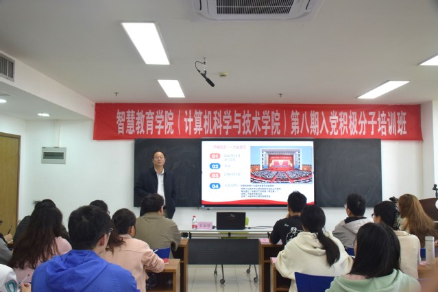 10月29日上午,智慧教育学院第八期初级党校第七次党课在泉山校区静远楼906顺利举行。校党委研究生工作部王本贤部长应邀为学员们带来了一场题为《学习贯彻党的二十大精神,立志做新时代好青年》的精彩专题党课。