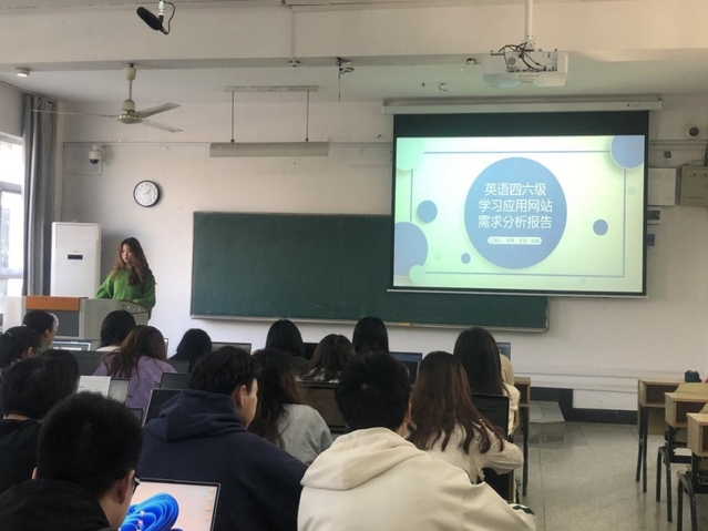 本次公开课的教学形式是同伴互评。按照抽签顺序,本节课由第十二小组和第六小组进行课题汇报,分别介绍了交互式教育APP--《悦读》和交互式教育网站--《英语四六级学习应用网站》的需求分析报告。小组汇报结束后,授课教师组织同学们进行同伴互评,包括全体同学在线评价、小组之间交流互评、以及组内成员自我评价等多种形式。最后,授课教师进行总结评价、汇报小组进行反思和改进。