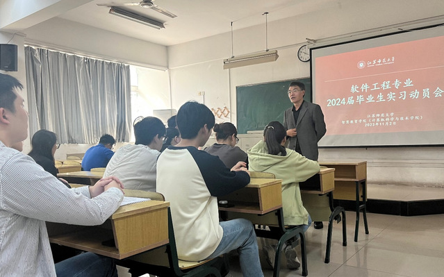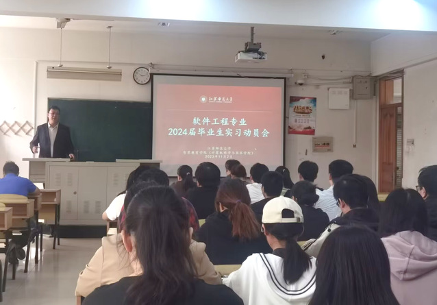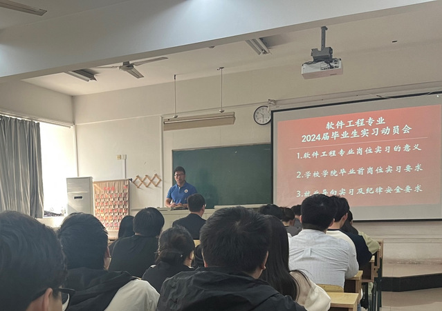 为推动软件工程系实习工作的顺利开展,2023年11月2日上午,智慧教育学院软件工程系在7#221召开了软件工程专业2024届毕业生实习动员会。会议由软件工程系主任宋媚副教授主持,智慧教育学院副院长祝义教授、副院长李子运教授、团委书记李强老师出席了此次会议,2024届软件工程专业全体毕业生参加了此次会议。