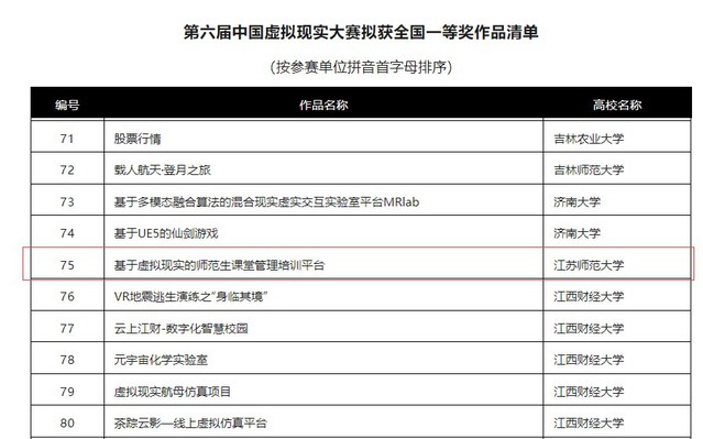我校参赛作品为《基于虚拟现实的师范生课堂管理培训平台》,该作品基于虚拟现实技术,致力于构建一套完整的师范生课堂管理能力培训平台。通过模拟真实的课堂教学环境,帮助师范生在虚拟场景中进行课堂管理和教学技能的培训。这不仅包括教育理论的学习,更注重实际操作和反馈机制,使师范生能够身临其境地参与学习和与虚拟学生进行互动。该作品展现为未来培养更具实践经验和创造力的师资力量提供了可行的解决方案,同时也为虚拟现实技术在教师教育中的应用探索开辟了新的方向。此次比赛成绩的取得,不仅充分展示了我校在计算机科学与技术领域的卓越实力,也为智慧教育学院在虚拟现实领域的研究与创新赢得了广泛的赞誉。期待在未来的学术舞台上,智慧教育学院的学子能够不断取得更多的优异成绩,为学校赢得更多的荣誉。