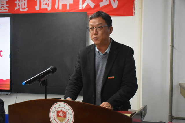 赵鹏在活动中讲话,对学院专业建设的新突破表示祝贺,对一直以来关心支持学校事业发展的合作企业表示衷心的感谢。赵校长介绍了江苏师范大学近年来事业发展情况,特别是学校积极贯彻落实教育部、省教育厅关于“加强产教融合,提升人才培养质量”的部署要求,主动面向区域、面向产业办学,深化人才培养供给侧结构性改革,不断推进产教融合项目和平台建设。他肯定了基地“五共同+五融合”的产教融合发展思路,期待学院和合作企业坚持特色发展,通力配合,锚定目标,科学谋划,扎实推进,着力于建立校企共同制定培养目标、共同建设师资队伍、共同建设实践基地、共同构建课程体系、共同开展技术研发的“五共同”产教融合长效机制,实现资本融合、技术融合、标准融合、人才融合、创新融合“五融合”协同创新模式的高质量完成。赵鹏希望江苏省产教融合重点基地建设点(智能教育软件产教融合基地)找准定位,坚持特色发展;铆钉目标,促教育教学成果转化;深度融合,打造人才集聚新高地;打造学校产教融合建设的“金字”招牌。