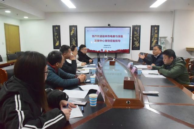 2024年1月17日下午,徐州市电教与装备发展中心余长营副馆长、张乐主任莅临江苏师范大学智慧教育学院,就教育技术学和现代教育技术专业的建设和人才培养开展深入合作交流。本次会议由学院党委书记周显洋主持,在静远楼908举行。我院教育技术学系主任王娟教授和部分教师代表参加了会议。