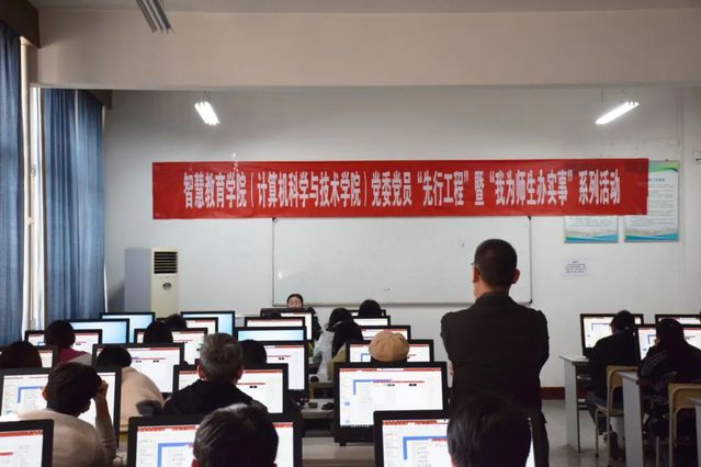 2024年3月20日,智慧教育学院(计算机科学与技术学院)公共教学系党支部联合机关党委第二十五支部(教学资源保障中心)举办全国计算机等级考试专题辅导答疑活动。本次辅导由公共教学系党支部书记张谢华、系主任聂黎生和刘啸、以及党员教师马杰和张秋菊老师共同组织开展,分别在泉山和云龙两个校区的计算机教室同步进行。教学资源保障中心主任、支部书记仲兆华,学院党委书记周显洋、副书记武悦出席活动。