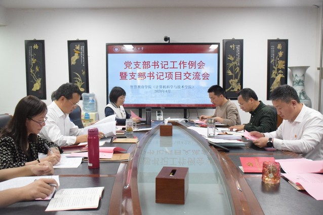 2024年4月26日下午,智慧教育学院召开党支部书记工作会议暨支部书记项目交流会。院党委书记周显洋、副书记武悦以及全体支部书记参会。