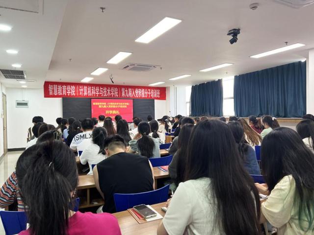 2024年5月22日下午,智慧教育学院(计算机科学与技术学院)在静远楼906报告厅举办第九期入党积极分子培训班开班典礼。本次培训班旨在加深学员对党的基本理论和基本知识的理解和掌握,端正入党动机,加强党性修养,坚定理想信念,争取早日加入中国共产党。学院党委副书记武悦、67名入党积极分子参加开班典礼,开班典礼由黄有玉老师主持。