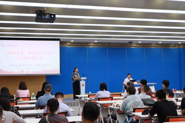 为持续深入推进全院党纪学习教育,强化党员干部的纪律意识,2024年5月24日下午,智慧教育学院党委与历史文化与旅游学院党委联合举办党委“廉政讲堂”暨党纪学习教育专家辅导报告会。本次会议特别邀请我校纪委副书记沈道海就新修订的《中国共产党纪律处分条例》(以下简称《条例》)进行了深入解读和专题辅导。智慧教育学院和历史与文化旅游学院党委委员、教工党员及部分学生党员代表参加了此次会议。