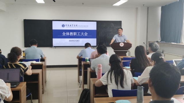 2024年6月28日,智慧教育学院在静远楼906报告厅召开全体教职工大会。会议由学院党委书记周显洋主持。