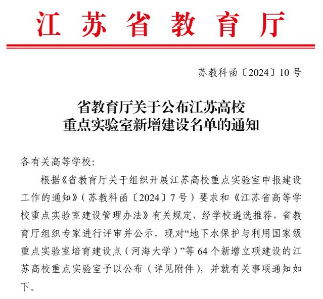 近日,省教育厅发布《关于公布江苏高校重点实验室新增建设名单的通知》(苏教科函〔2024〕10号),由我院董永权教授牵头申报的“江苏省教育智能技术高校重点实验室”成功获批,这是我院在平台方面取得的又一标志性成果。