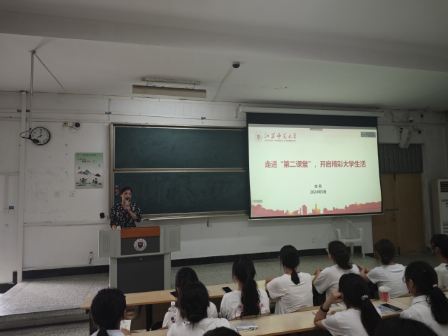 2024年9月10日上午8时,智慧教育学院在17#300A/300B教室成功举办“走进‘第二课堂’,开启精彩大学生活”主题讲座。此次讲座旨在帮助2024级新同学更全面地了解共青团工作,树立挺膺担当的意识。讲座由校团委书记李丹主讲,2024级智慧教育学院全体新生参加。