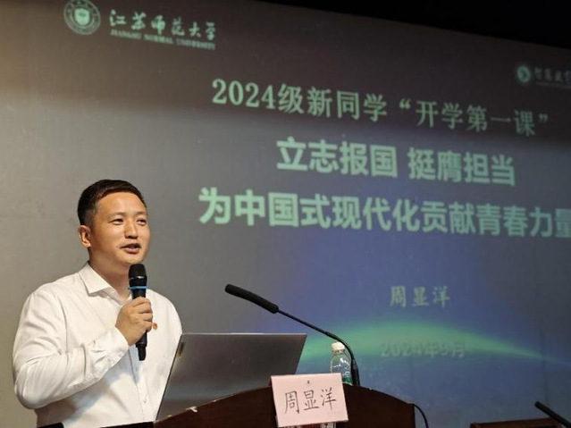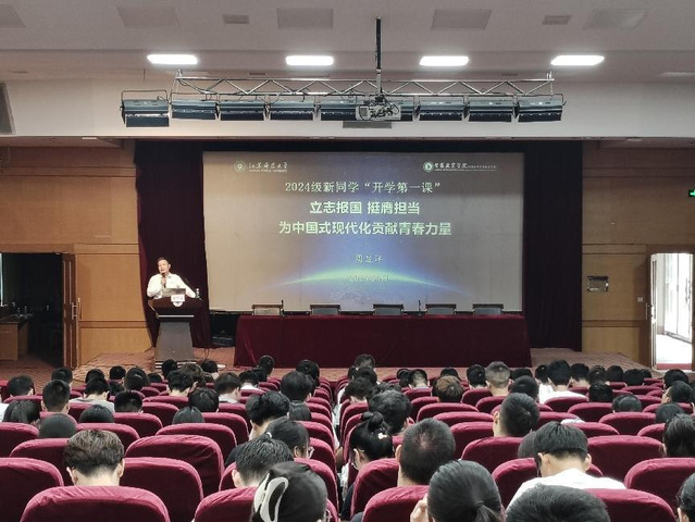 2024年9月12日,智慧教育学院(计算机科学与技术学院)党委书记周显洋以《立志报国,挺膺担当,为中国式现代化贡献青春力量》为题,为学院2024级新同学讲授“开学第一课”。