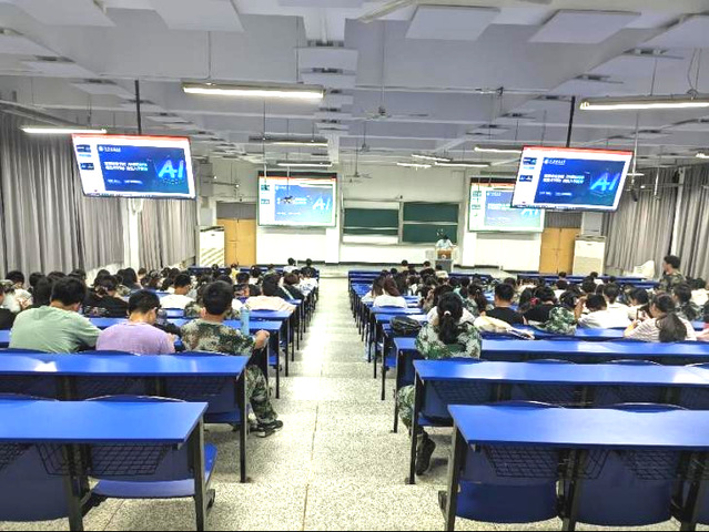 董永权首先对我院历史沿革、专业特色和办学理念进行了详细阐述,围绕师资力量、实验室设备、虚拟仿真金课等教学资源和科研平台向同学们讲解各专业培养方案,鼓励同学们积极参与科研项目和各类竞赛,以赛促学,提升专业技能和创新意识。在职业规划方面,他建议同学结合个人兴趣和职业目标,积极参加社会实践活动,找到自己的发展方向,合理规划大学四年的学习路径。讲座最后,董院长勉励同学们树立科技强国理念,珍惜大学时光,在师大的广阔天地里,勇敢追梦,挥洒青春汗水,拥抱无限可能。