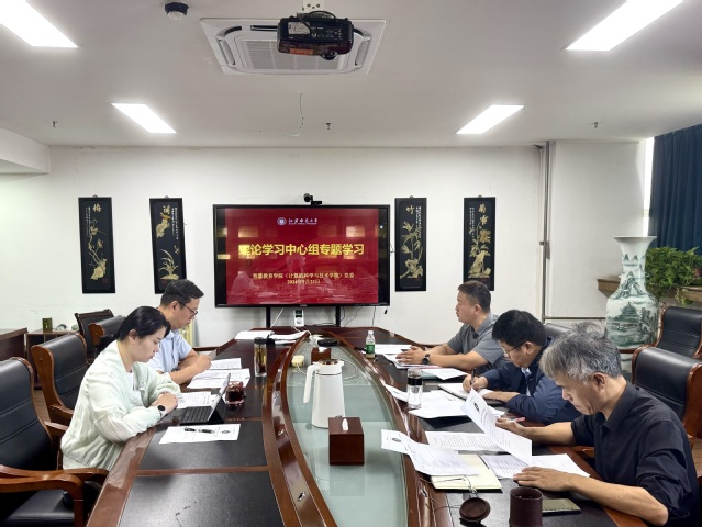 2024年9月23日,智慧教育学院党委理论学习中心组在静远楼908会议室召开九月份专题学习会,专题深入学习领会习近平总书记关于推进中国式现代化的重要论述。会议由学院党委书记周显洋主持,学院党委副书记武悦领学,学院领导班子成员参加会议。