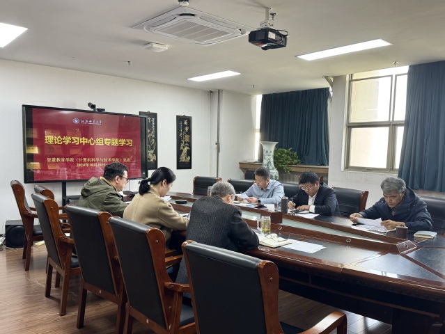 2024年10月28日,智慧教育学院党委理论学习中心组在静远楼908会议室召开十月份专题学习会,深入学习领会习近平总书记在全国教育大会上的重要讲话精神和《论教育》。会议由学院党委书记周显洋主持,学院副院长祝义领学,学院领导班子成员参加会议。