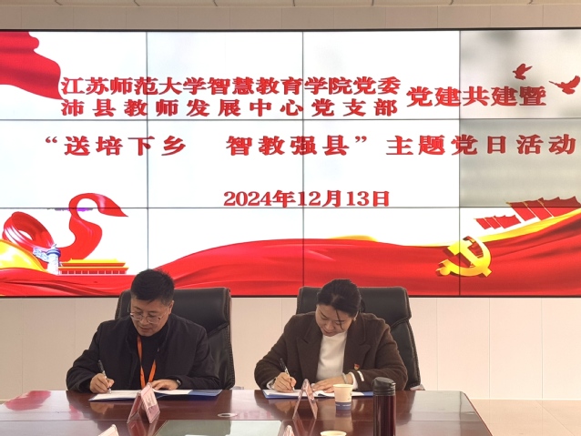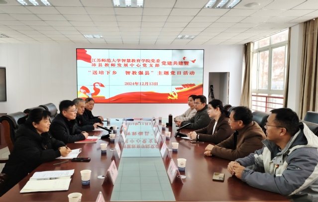 2024年12月13日,智慧教育学院(计算机科学与技术学院)党委与沛县教师发展中心党支部携手举办党建共建暨“送培下乡 智教强县”主题党日活动。学院党委副书记武悦、教育技术系教师代表,沛县教育局副局长、教师发展中心主任王利及沛县教师发展中心相关领导、党员代表参与活动。