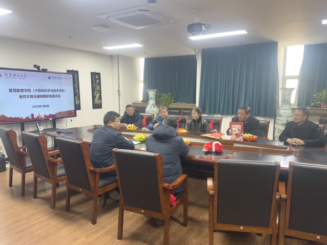 2025年1月8日,智慧教育学院(计算机科学与技术学院)在静远楼908会议室举办老同志情况通报会暨新春座谈会,听取老同志对学院发展的宝贵意见建议,与老同志共迎新年、共谋发展、共话未来。学院党委书记周显洋主持,院长董永权以及朱信诚、张永常、于素云、张斌、徐世河等五位老领导老同志出席。